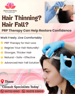 Struggling with hair thinning or hair loss? At CharviCare Clinic, we offer the best PRP hair treatment in Thane to help you achieve stronger, thicker, and healthier hair naturally. Under the expert care of Dr. Vinayak Sutar, our PRP (Platelet-Rich Plasma) therapy stimulates hair growth by using your body’s own healing power — ensuring safe, natural, and long-lasting results.